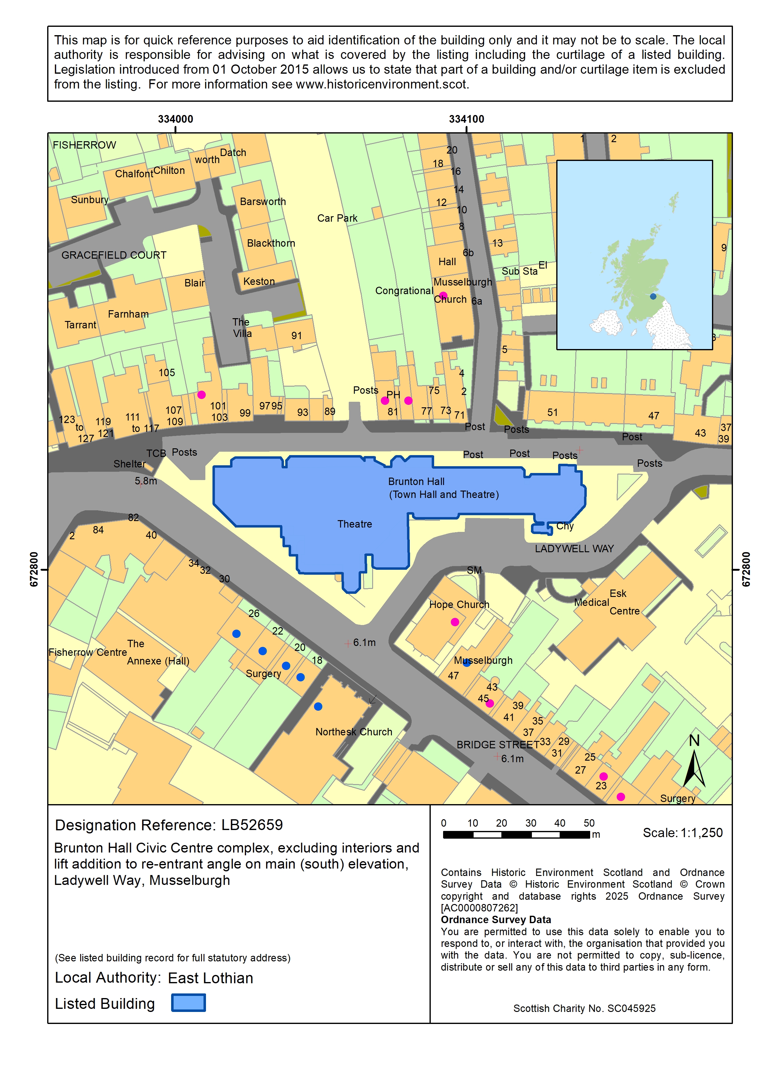The Brunton Hall is a purpose-built civic centre complex and public arts venue that was built between 1968 and 1971. It is a landmark building in Musselburgh town centre that is prominently located at the junction between North High Street and Bridge Street. Due to the presence of Reinforced Autoclaved Aerated Concrete (RAAC) in the roof panels, the public areas of the building were closed in 2023. The Council offices remain in use but the building is due to be vacated. We understand that the Council are considering the future of the building and this site.